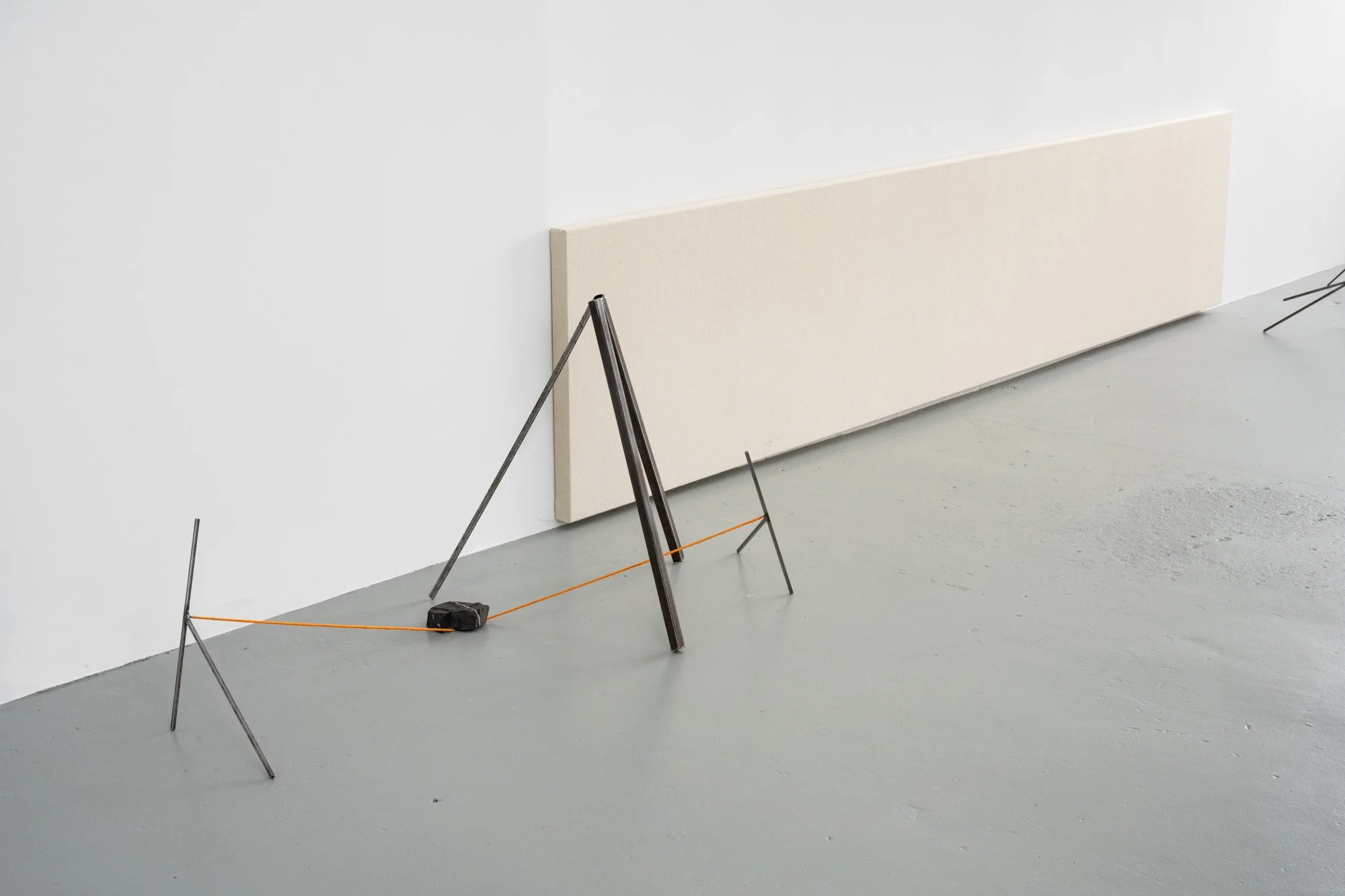 river rocks, steel, masking tape, paint.